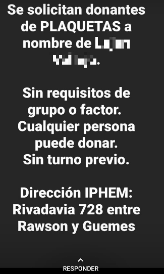 En los mensajes a los que se refiere el especialista se puede leer que la donación que se esta pidiendo es "sin requisitos de grupo o factor" y "sin turno previo".