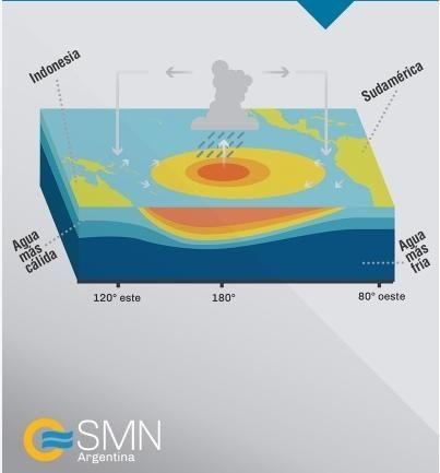 Cabe recordar que, este evento climático se inicia cuando el calentamiento del agua iguala o supera en 0.5°C a las temperaturas normales, durante cinco meses consecutivos. De ese modo, el agua caliente actúa como una gran hornalla que calienta el aire y aumenta la evaporación. La energía agregada a la atmósfera altera la circulación del aire en todo el mundo.
