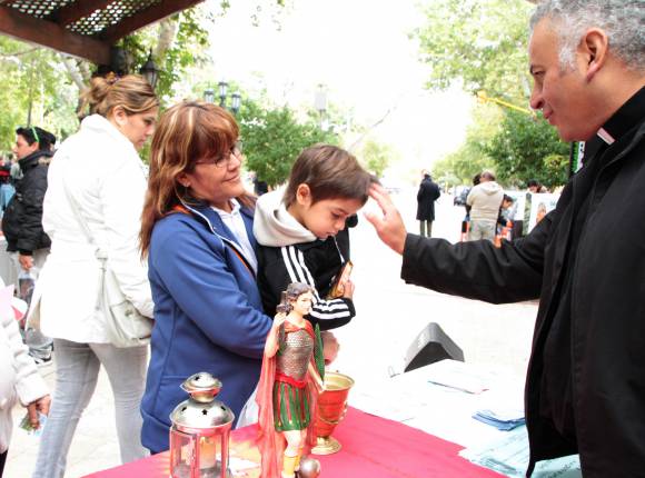 Olga Calderón dijo que era una señal del cielo. Que no tenía necesidad de ir al centro, pero que algo en su interior le dijo que debía hacerlo. Fue para comprar cosas para su casa y se encontró con la bendición de su santo favorito. Ayer en la mañana, la imagen de San Expedito estuvo en la Peatonal céntrica. Es la que se venera en el santuario que está en El Bosque, Angaco, y que trajeron para promocionar las actividades que se realizarán en ese lugar el próximo fin de semana para conmemorar su día que se celebra el 19 de abril. La promoción incluyó bendiciones con agua bendita, degustación de vinos artesanales, y la entrega de un croquis para llegar al santuario. El fin de semana que viene también habrá misa y procesión en honor al santo en Caucete.