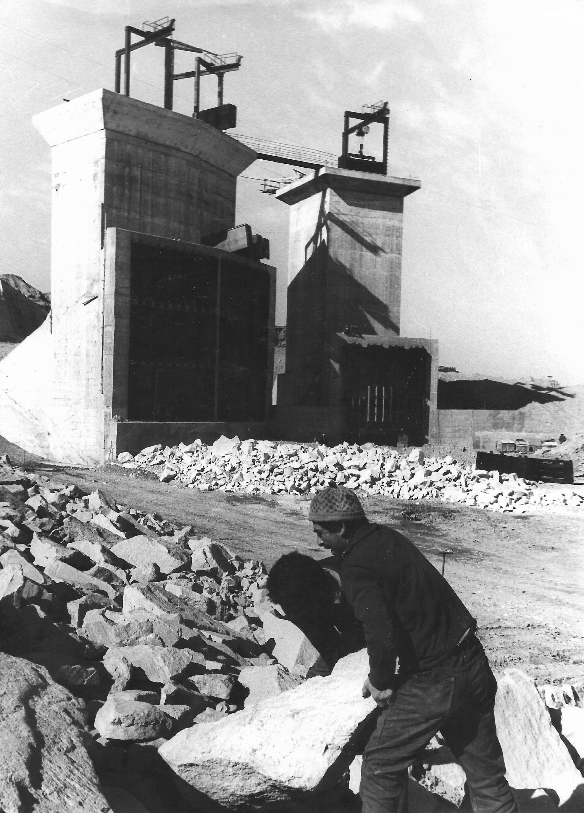 Construcción del embalse y la usina del Dique de Ullum.