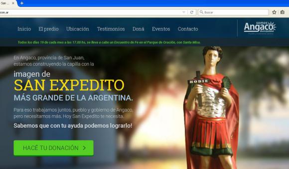 Ahora, los devotos de San Expedito no tendrán que ir personalmente hasta el santuario en El Bosque, Angaco, para donar dinero en su nombre. El municipio y la Parroquia Nuestra Señora del Carmen de ese departamento pusieron en marcha el sitio web oficial del santo para que las donaciones también puedan realizarse vía online y con diferentes medios de pago. Tanto la página como la cuenta bancaria donde van a parar los fondos donados son administrados en forma conjunta por ambas instituciones para mayor transparencia.