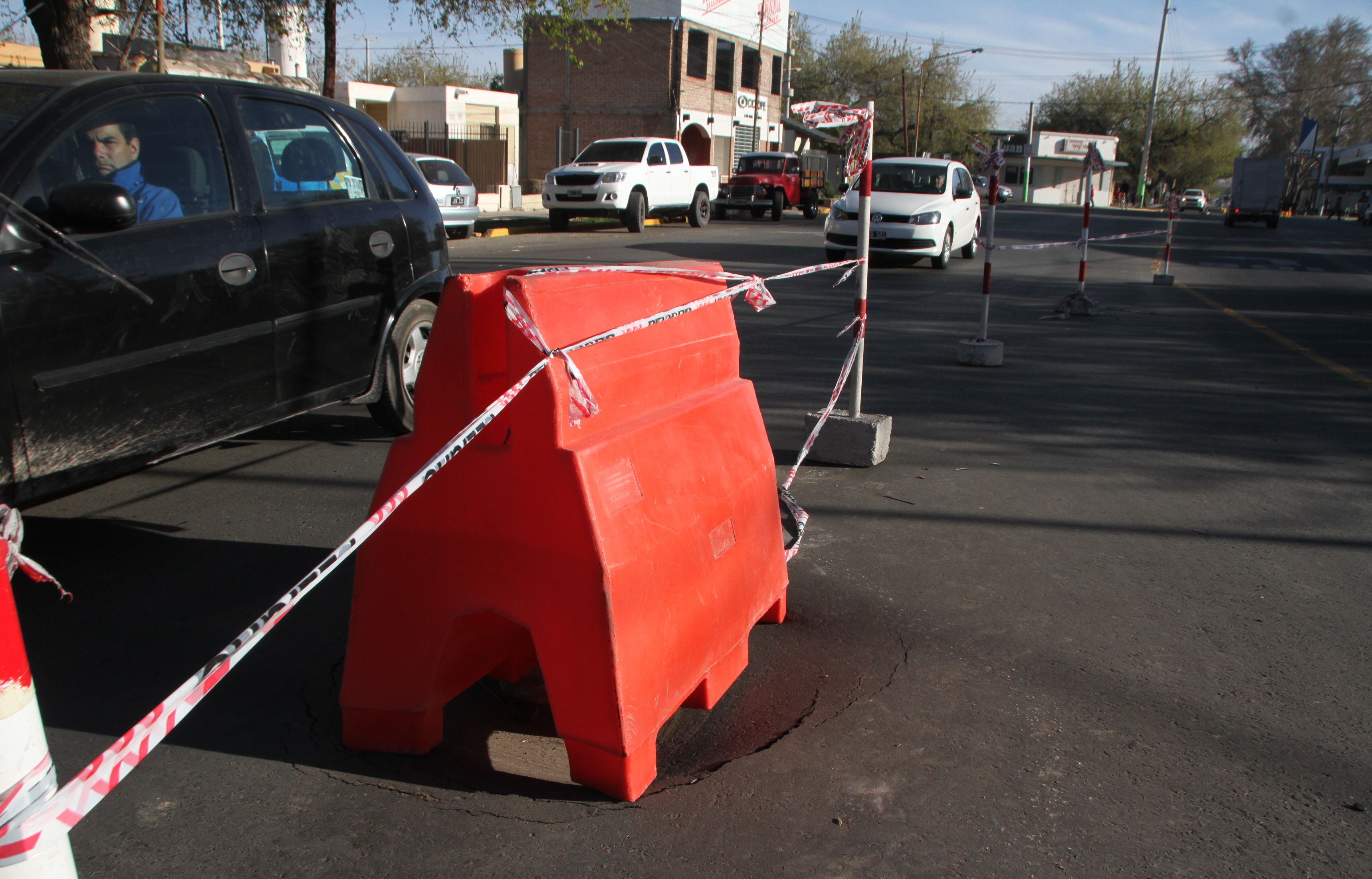 No alcanzaron a tapar el gran pozo que quedó como saldo del hundimiento del pavimento y se formó otro más que potenció el caos vehicular en una esquina clave como problemática por la afluencia de tránsito. Es la intersección de calles Paula Albarracín de Sarmiento y Colombia, en Capital, donde en menos de una semana se hundió el asfalto en dos sectores. Cuando ocurrió el primero, desde Vialidad Provincial dijeron que fue por la mala compactación del terreno luego de una obra de OSSE. Ahora, salieron a decir que ’en realidad’ se trata de un problema de humedad provocada por filtraciones de agua. Por este motivo deberán remover el pavimento en un espacio de media cuadra.
