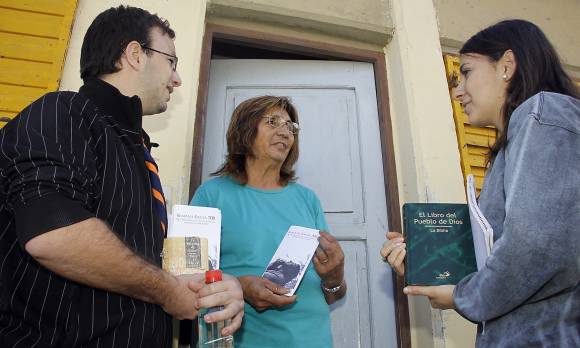 Doña Luisa apura el paso hasta la puerta de reja de su casa en el Barrio Independencia, departamento San Martín, para adelantarse a los chicos que ya se van y despedirlos con un beso. Son dos chicos, Guillermo Otarola y Brenda Díaz, pertenecientes al Movimiento Jóvenes Salesianos, que desde ayer y hasta el sábado, caminarán las calles de San Isidro y Dos Acequias para predicar, casa por casa, la palabra de Dios. Una actividad que hasta ahora estuvo más asociada a grupos religiosos de otros credos y no al catolicismo, pero que los jóvenes salesianos (mallinistas, scouts, misioneros, exploradoras) han empezado a poner en práctica para difundir más la religión, en contrapartida de otras que ya vienen realizando el puerta a puerta como algo habitual. "Es una forma de llevar la palabra de Dios más directa, llegando a los lugares donde la gente vive y donde, si es su voluntad, nos permiten pasar y compartir por un rato sus vidas", explicó Guillermo, mate en mano para amenizar la caminata.