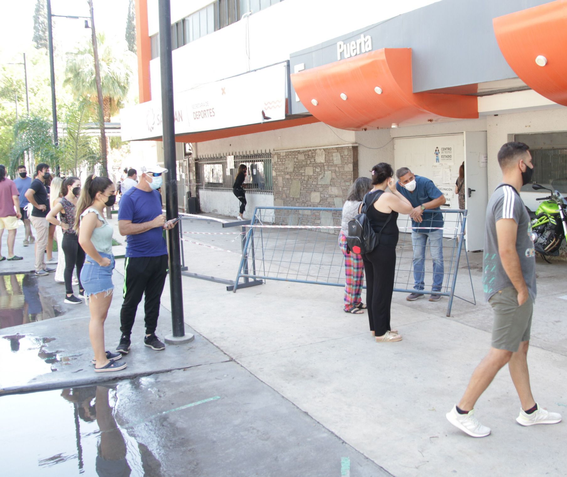 En la fila. En el estadio Aldo Cantoni hubo personas de todas las edades esperando para hacerse los hisopados. Hubo una larga fila durante todo el día.