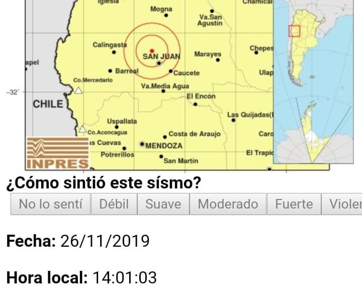 Desde ayer, quienes ingresan a la página del Instituto de Prevención Sísmica (Inpres) después de un sismo pueden consultar una encuesta para definir cómo percibió el movimiento. El resultado de ese sondeo, es tenido en cuenta luego por los expertos como uno de los aspectos para determinar la Intensidad del temblor.