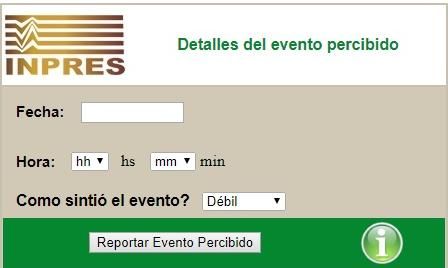 La página web del Inpres incorporó también la posibilidad de reportar un movimiento telúrico que no haya sido registrado.