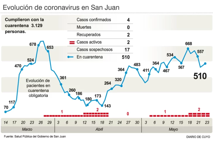 Según explicaron, a estas tres personas no les cabría la definición de contacto estrecho (estar al menos 15 minutos con un infectado, sin respetar distanciamento social ni medidas de protección). Por otro lado, siguen los dos casos confirmados internados y hay 17 sospechosos.