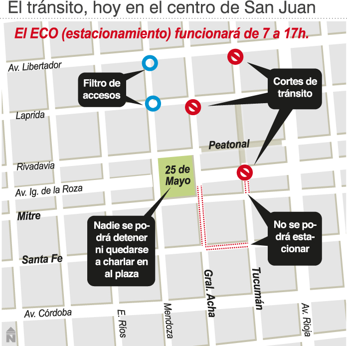 El dato de mayor significancia e impacto, es el regreso del comercio presencial, que empieza a movilizarse a partir de hoy. El Gobierno estimó que habrá al menos unas 200.000 personas que empezarán a tener actividad y que estarán habilitadas por sus trabajos, pero es difícil saber cuál será el total de personas que saldrán de sus casas, ya que dependerá del nivel de necesidad de compra y del poder adquisitivo que cada uno tenga. Si bien hay estimaciones aisladas por los documentos que están habilitados, no es suficiente como para realizar un cálculo más o menos serio, dijeron fuentes del gobierno provincial. Incluso el Gobierno y el municipio de la Ciudad de San Juan, dispusieron un operativo especial para el control de los vehículos al microcentro, que también se pondrá en práctica desde hoy. El mismo incluye cortes de calles, controles vehiculares, prohibición de estacionamiento en algunas cuadras y hasta el cambio de horario del funcionamiento del Estacionamiento Controlado (ver infografía inferior).