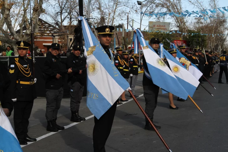 El departamento fue elegido por el Gobierno de la provincia para el desarrollo del desfile cívico-militar oficial y allí se reunieron las autoridades, encabezadas por el gobernador Sergio Uñac.
