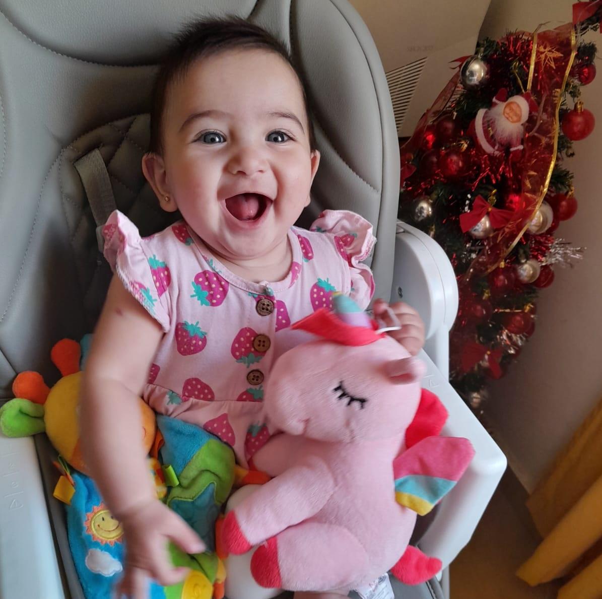 Mimada. Jorgelina Ibáñez Vives tiene tan sólo 22 días. Fue la más mimada por las Reyes Magos. Recibió muchos regalos.