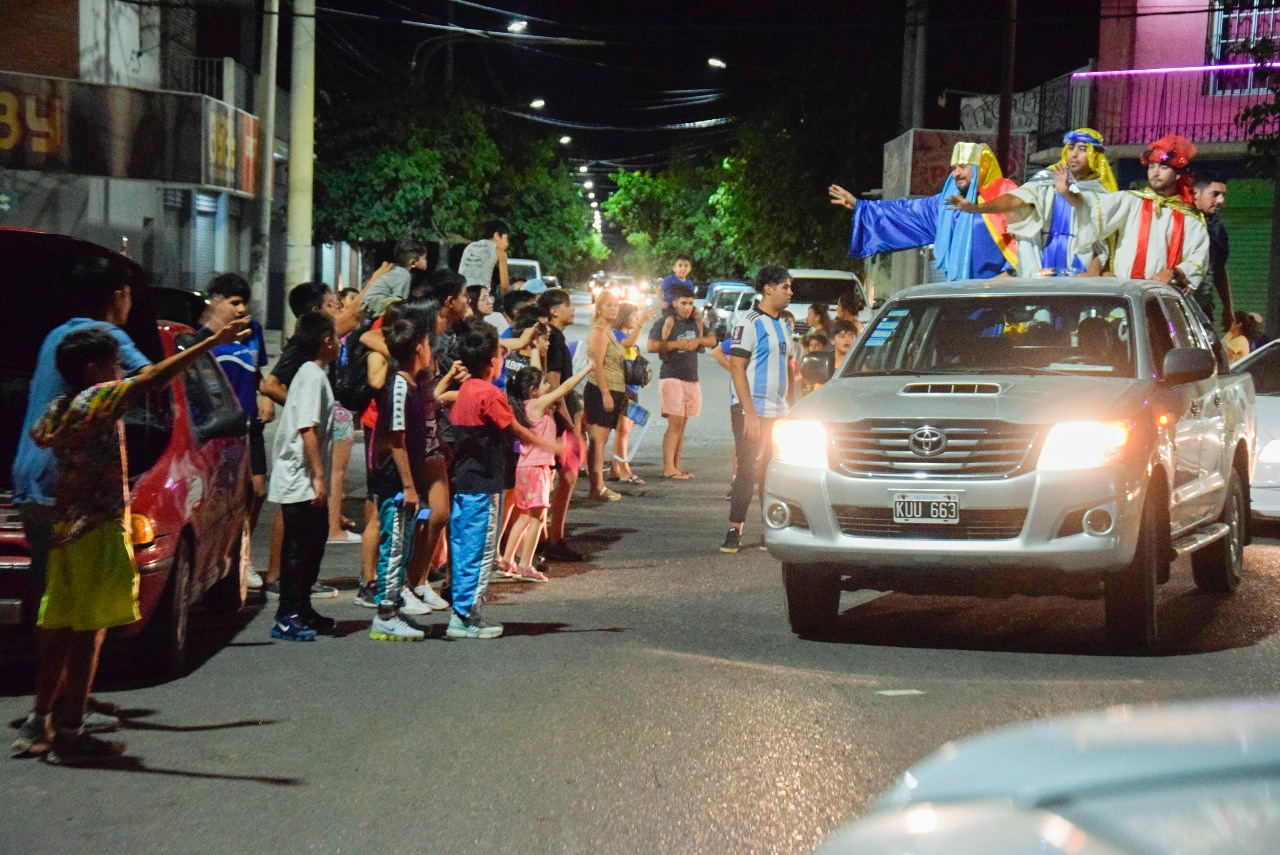 Caravanas. Los Reyes Magos recorrieron varios barrios durante la tarde y noche del jueves y de ayer. Los chicos saludaron su paso.