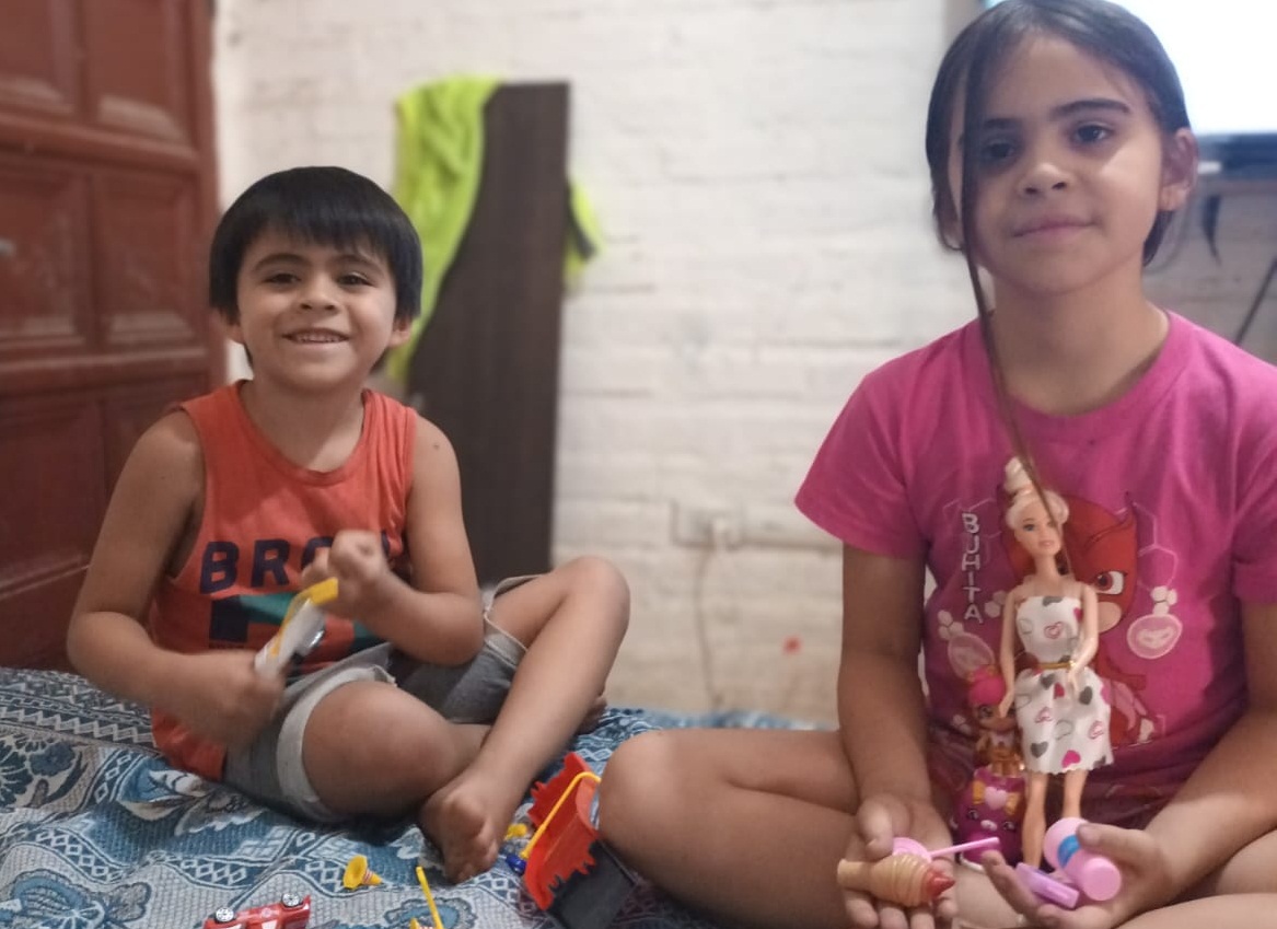 Mucho juego. Joaquín y Emma Gallego son hermanitos y recibieron varios juguetes. Los niños jugaron toda la mañana.