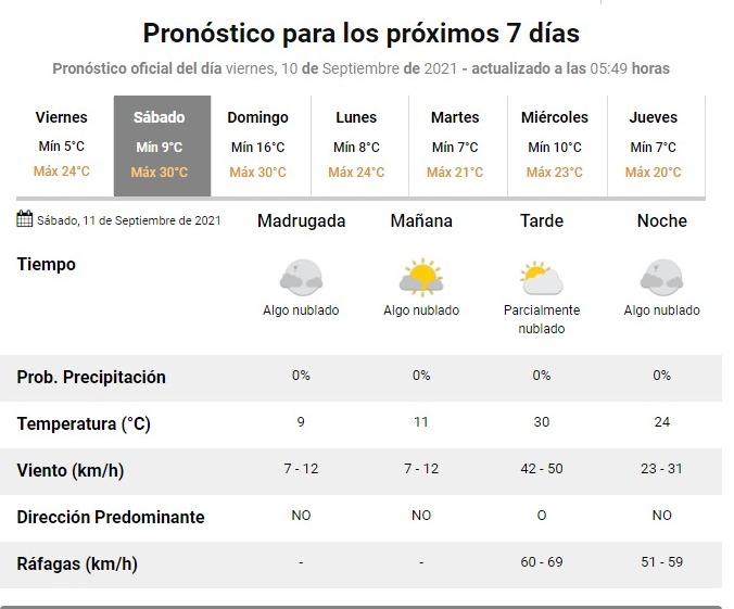 Sin dudas, el viento soplará con mayor intensidad mañana pasado el mediodía “con intensidades que oscilarán entre 40 y 60 km/h, mientras que las ráfagas podrían superar los 69 km/h”