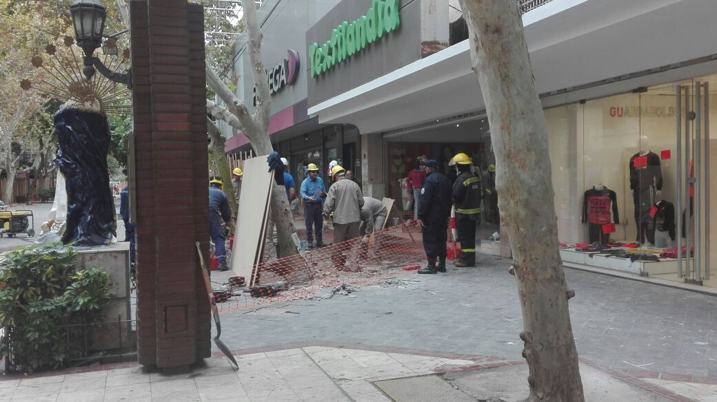Un susto mayúsculo fue el que ocasionales clientes y empleados de los negocios de las inmediaciones de peatonal Rivadavia entre Tucumán y Rioja pasaron este viernes en la mañana, minutos después de las 10:30 cuando ocurrió una fuga de gas mientras obreros trabajaban en las tareas de remodelación.