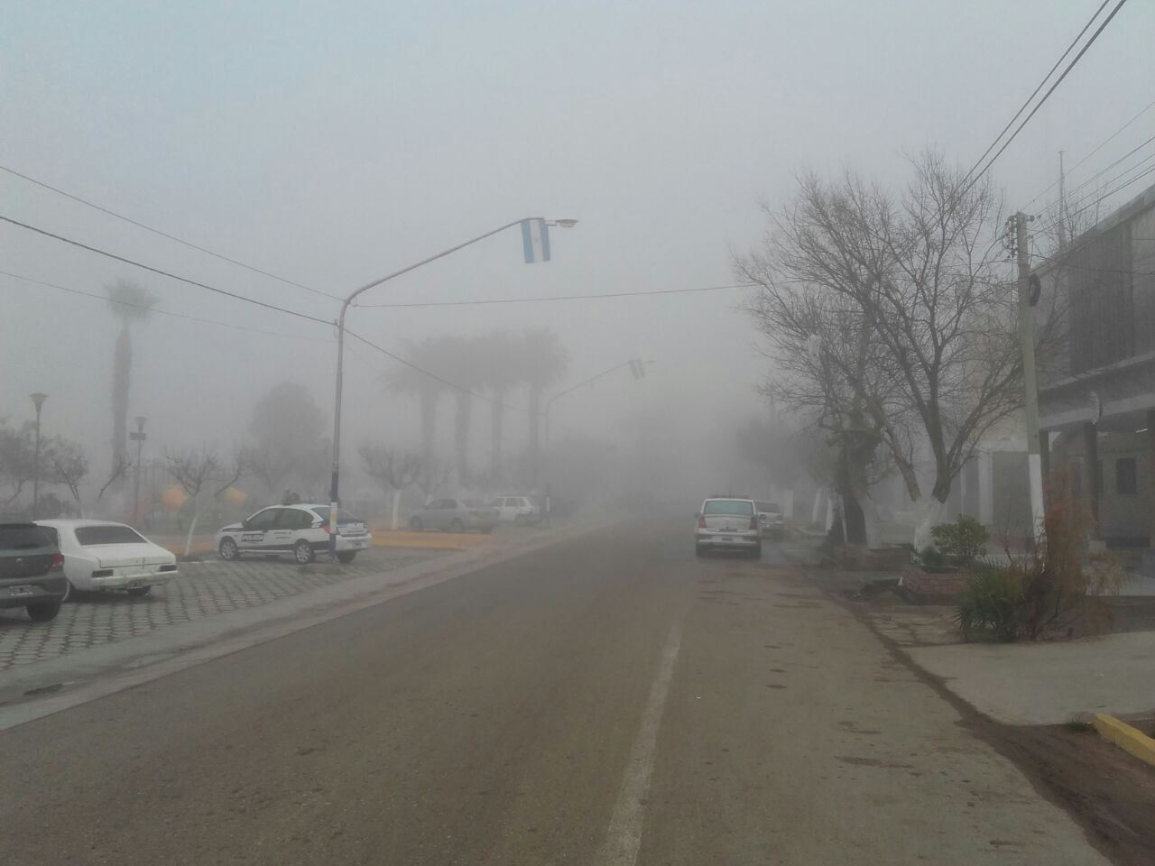 El texto informa que "se recomienda transitar con  precaución en calles y rutas de la provincia, debido a la presencia de neblina en distintas zonas que disminuye la visibilidad. Circular a baja velocidad, con luces bajas encendidas. Aumentar distancia de frenado. No sobrepasar a otros vehículos".