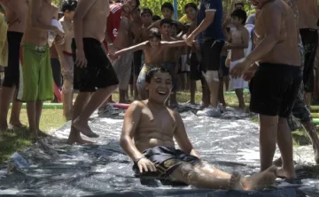 El juego consistía en deslizarse de panza por un nailon negro que estaba cubierto de espuma. Fue una propuesta de los profesores para subsanar la falta de pileta y a pesar de que los hicieron con un poco de miedo de que no tuviera éxito, el juego fue la estrella. Con sólo dos nailones, un poco de agua y jabón liquido lograron las carcajada de los casi 200 chicos, en el Camping Municipal. Los profesores dividieron a los chicos por sexo. Y armaron una alfombra para nenas y otra para varones. Y fue en esos grupos que los chicos jugaron hasta el cansancio.