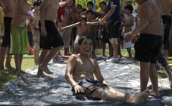 Los gritos se escuchaban desde una cuadra antes. Y a medida que la colonia estaba más cercana la alegría parecía contagiarse. Es que las largas colas para tirarse en la alfombra enjabonada hicieron que el baile y el canto fueran usados para matar los segundos de espera. Ahí, con la panza llena de espuma pero con la sonrisa a pleno, los chicos aprovecharon durante varias horas el juego que revolucionó toda la colonia de Ullum.
