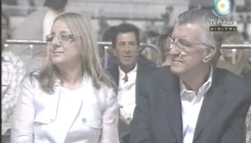 El gobernador de Buenos Aires, Daniel Scioli, junto a su esposa, Karina Rabolini, también están el autódromo, en su segunda participación de la fiesta Nacional del Sol.