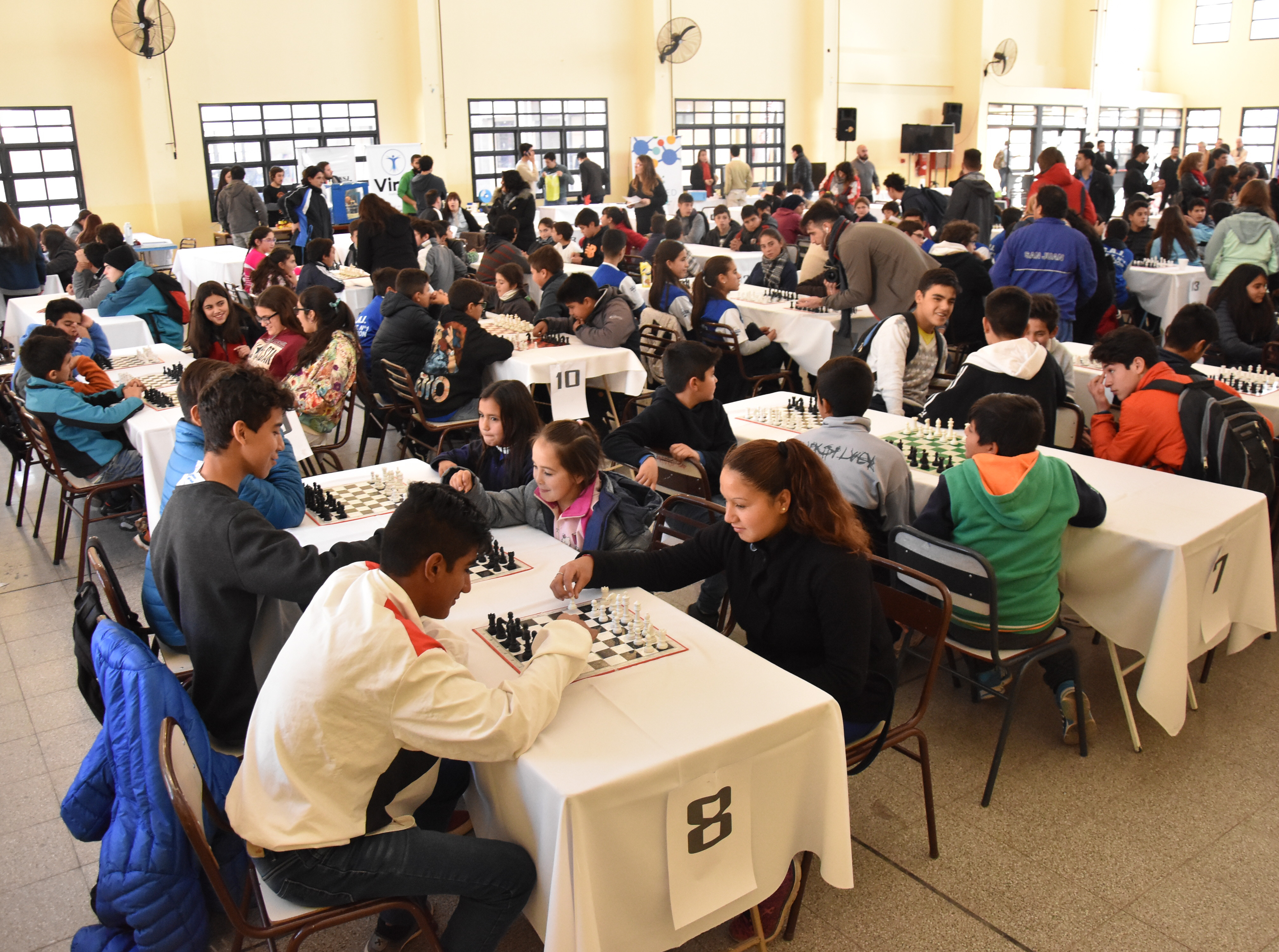 Alumnos de 15 escuelas sanjuaninas participaron del "I Encuentro Educativo de Ajedrez Provincial 2018", que se desarrolló en el SUM de la escuela EPET Nº 5, en el que además de medirse en el tablero aprendieron de una charla que brindaron Claudia Amura -considerada la mejor ajedrecista latinoamericana de la historia y dueña del récord como campeona argentina más joven, con 15 años- y el jachallero Román Hermman, quien se encuentra hoy rankeado a nivel internacional.