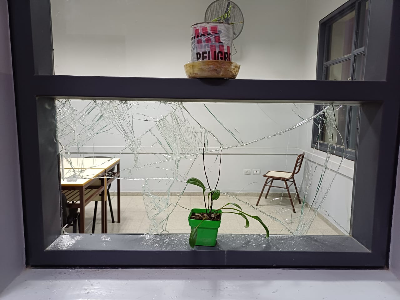 Una computadora, un teléfono fijo y dos parlantes fue el botín que se llevaron los jóvenes delincuentes pero a su vez, rompieron puertas y vidrios. Este caótico escenario es el que motivó que la comunidad educativa se uniera y realizara un abrazo simbólico para exigir más seguridad.