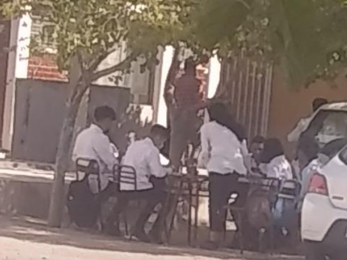 En sus bancos, debajo de un árbol, en medio del patio de la escuela, a la intemperie. Así están tomando clases los chicos de 6to Año de la escuela Nicanor Larraín, de Villa Hipódromo en Rawson. Sorprendidos y preocupados por la situación, los padres de los chicos decidieron denunciarla públicamente y piden una solución.