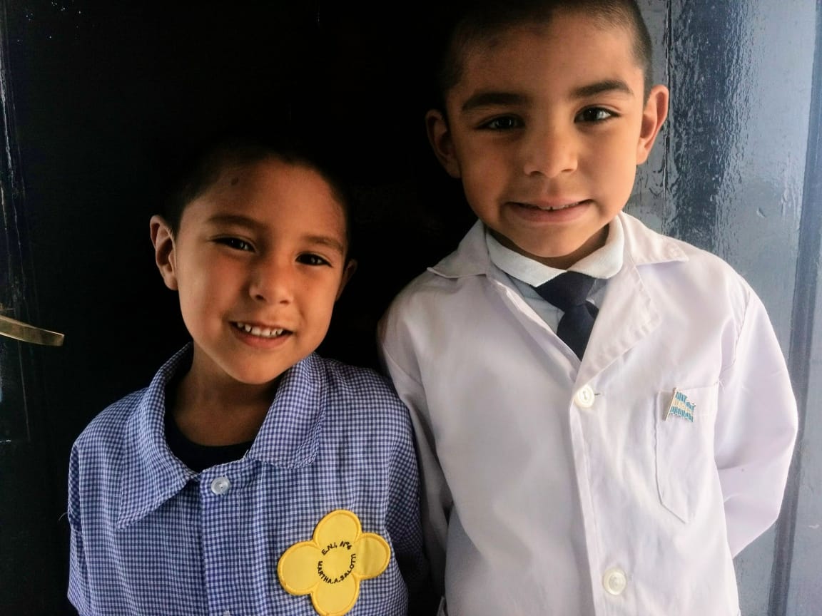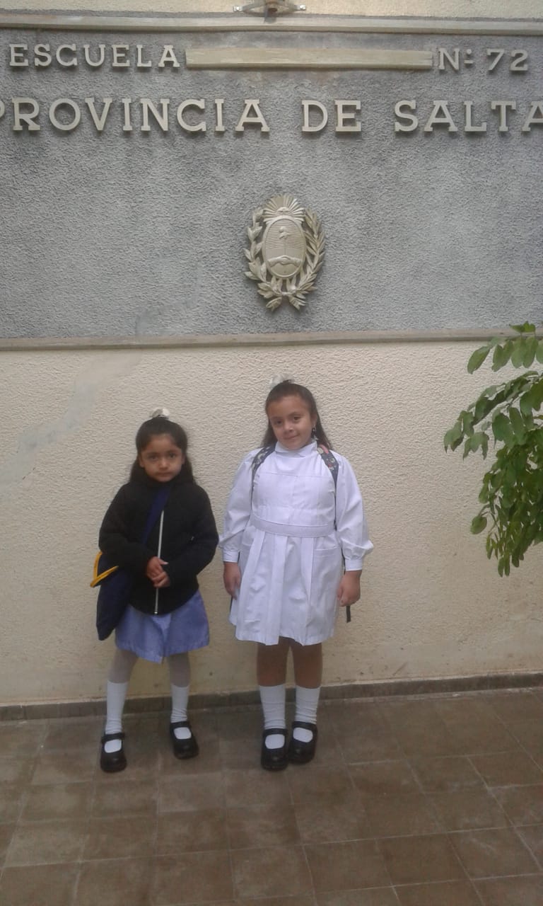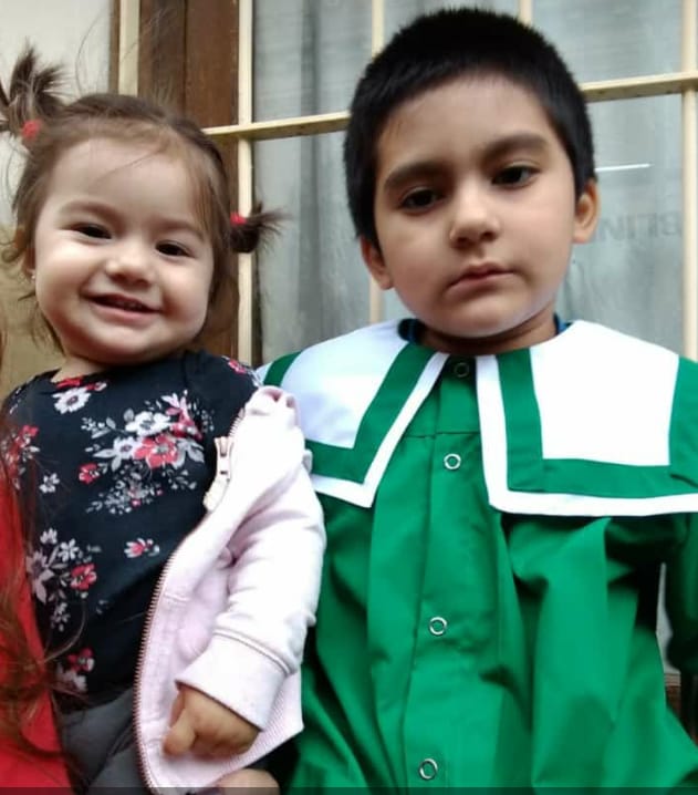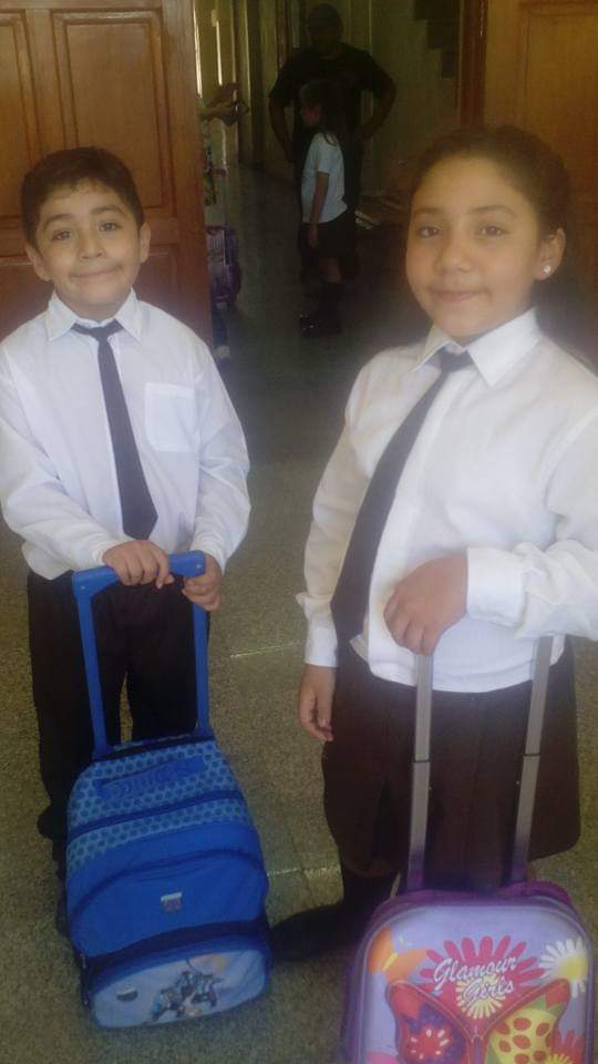 Benicio en su primer día de clases junto a su hermanita Saritah.