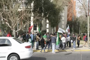 San Juan, 27 de julio.- Este mediodía, poco más de 50 alumnos universitarios se concentraron en el Centro Cívico para repudiar la suba del boleto de $0,70 a $0,75.