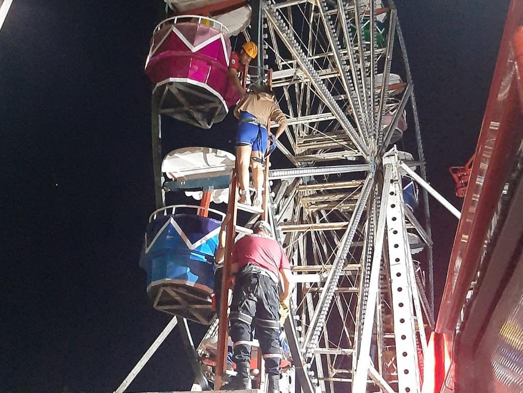 Ruarte contó que en el operativo de rescate, que duró una hora y 40 minutos, participaron 14 bomberos divididos en dos grupos. Uno se encargó de rescatar a las personas que estaban a más bajas altura, utilizando escaleras extensibles. Mientras que el otro se encargó de rescatar a las que estaban en el extremo superior de la vuelta al mundo, utilizando una hidrogrúa cuyo brazo llega hasta los 27 metros de altura. Este grupo es el que además tuvo que asistir y contener con una charla previa a las personas afectadas para evitar que entraran en pánico a la hora de emprender el descenso.