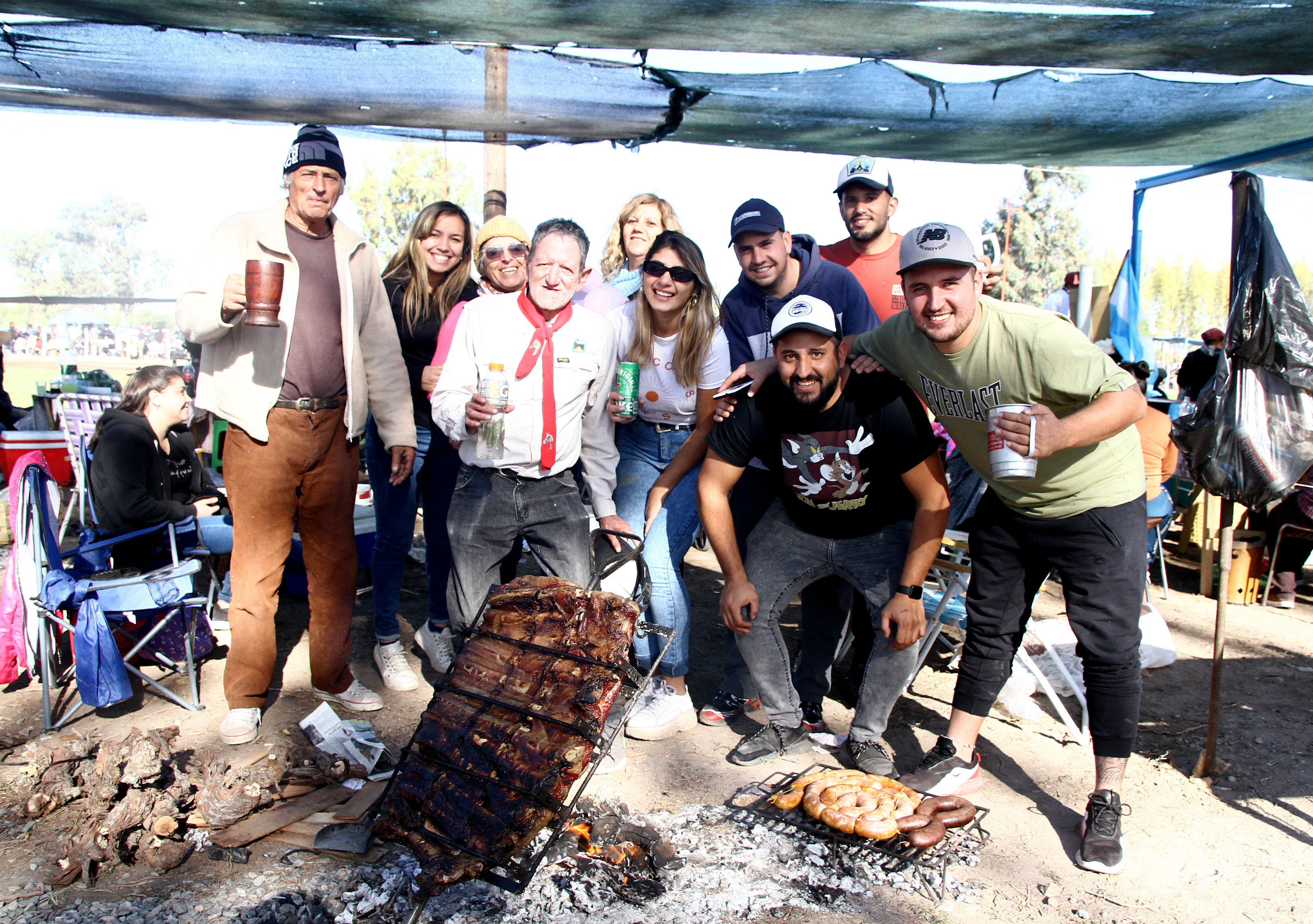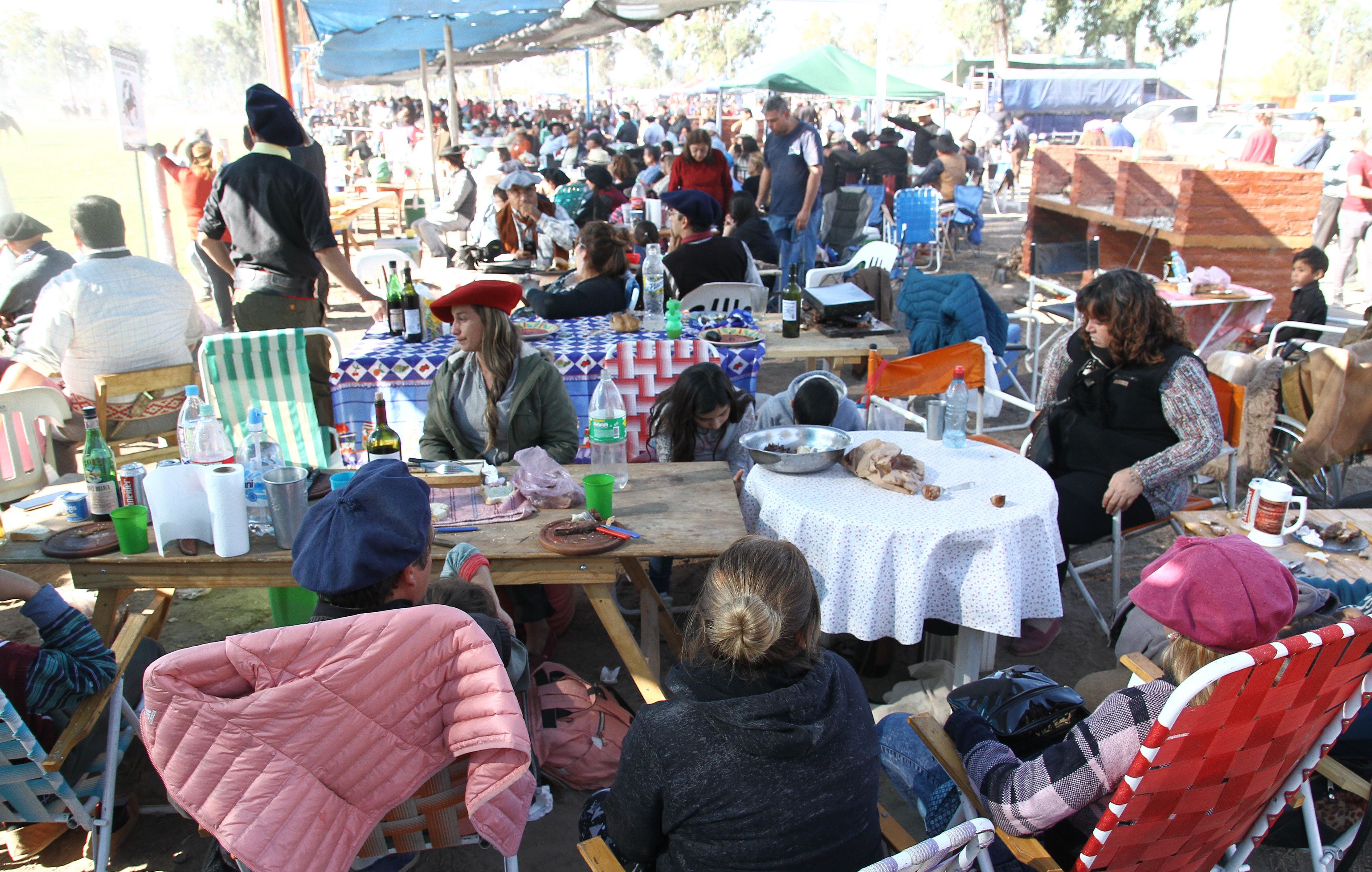 Los asistentes se instalaron con largas mesas y reposeras; y ahí nomás las parrillas, con asados y fuegos que estuvieron activos todo el tiempo. Cada familia tuvo sus diferentes momentos para almorzar.