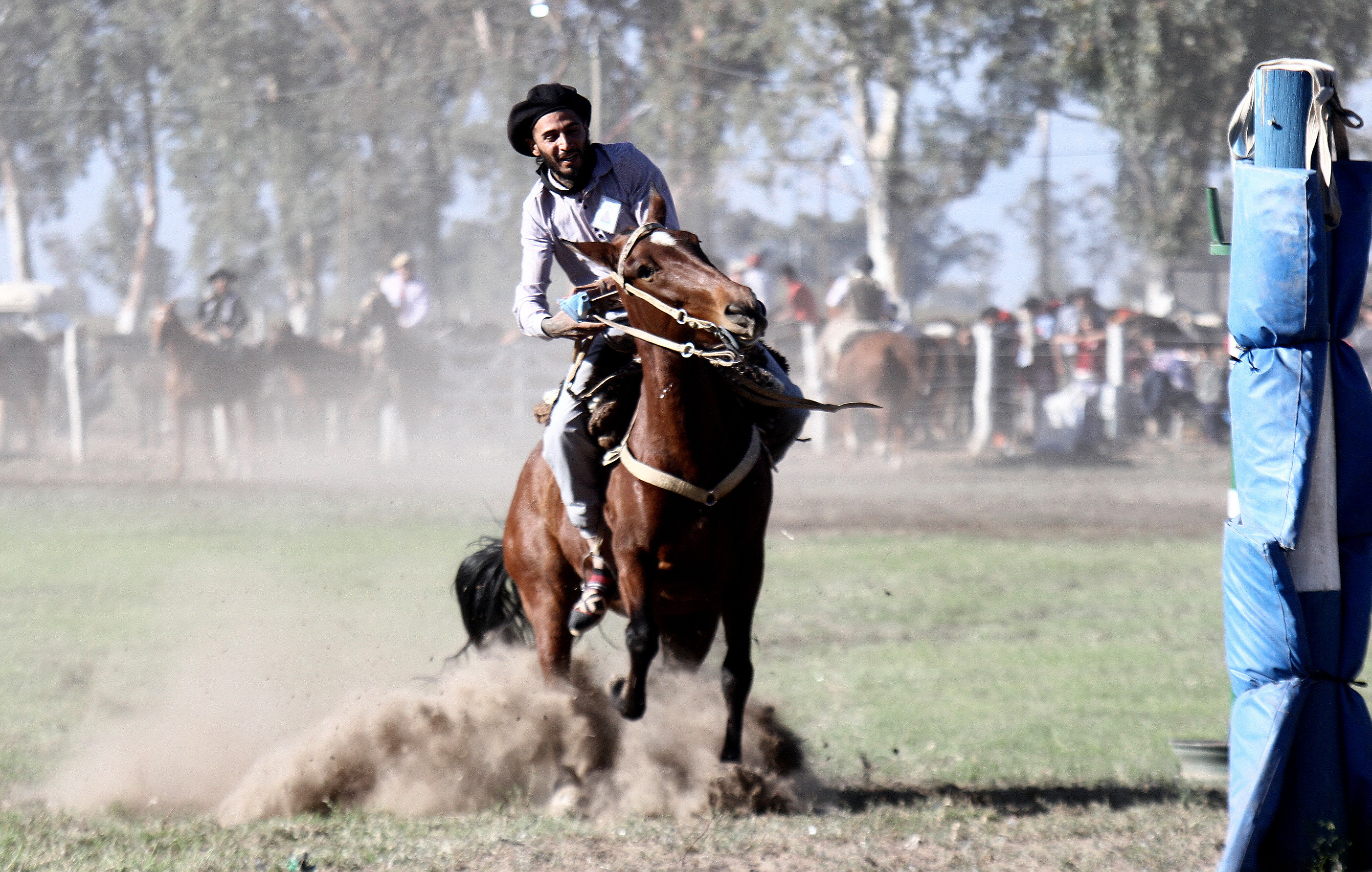 La carrera consistió en un mano a mano que incluyó un tramo recto de aceleración y luego un slalom de ida y vuelta entre 5 tambores y un palenque, para regresar en línea recta. Pedro ganó el pique y llegó primero a los obstáculos, entonces pasó lo que él ya sabía, que girar la moto en tan poco espacio le iba a hacer perder tiempo. Juan emparejó a la Kawasaki en los tambores y el caballo, pegado a cada obstáculo, se movió ágil para sacar una diferencia clave. El público deliró y los protagonistas terminaron ovacionados.