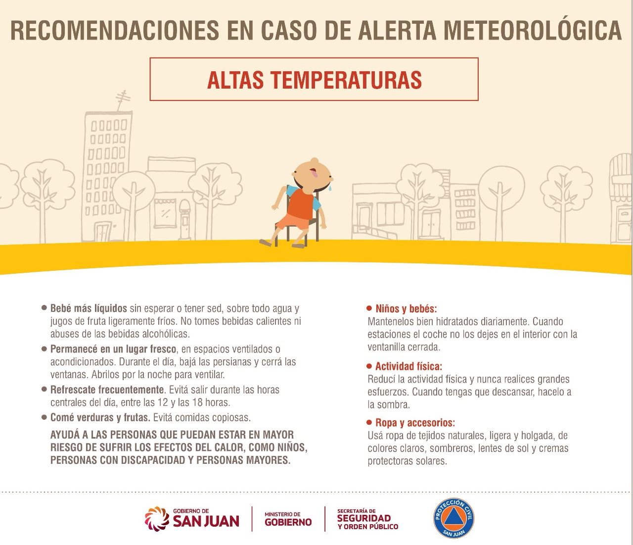 Las altas temperaturas azotarán la provincia y desde la Dirección de Protección Civil dieron a conocer algunos consejos para evitar golpes de calor.