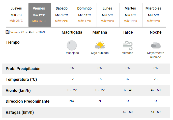 El sábado, el viento seguirá soplando de modo similar y el termómetro se moverá entre los 17 y los 29 grados.