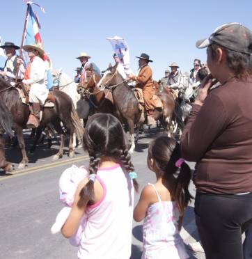 Algunas familias a esa hora ya tenían el asado listo para invitar al gauchaje con un pedazo de pan casero. Otras, a pesar del calor, les convidaron mate con sopaipillas para mantener la tradición.