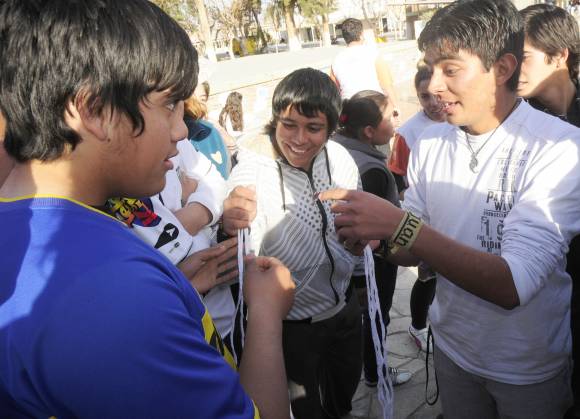 Mientras los chicos trenzaban, Juan fue contándoles los secretos de la técnica. Entre otras dijo que lo esencial es hacer los nudos con los hilos que corresponde a cada vuelta, si no la trenza queda despareja. Además, recomendó quemar la punta de cada hilo una vez que termina la tarea, para evitar que deshilachen.