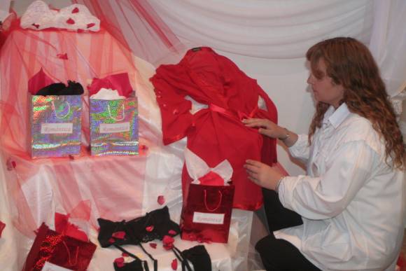 En el stand de la escuela Juan Ramírez Velazco, de Santa Lucía, la premisa se cumplió al pie de la letra. La lencería romántica que hicieron las alumnas de Corte y Confección se veía desde lejos. La ropa estaba colocada en maniquíes con peinados hechos por los alumnos de Peluquería. Y se destacaban las cajas de colores brillantes, rodeadas de pétalos de rosas de distintos colores.