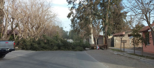 También se cayeron árboles en el barrio Fortabat, de Rivadavia, detrás de Ausonia y en el predio de la Facultad de Ciencias Sociales de la UNSJ.