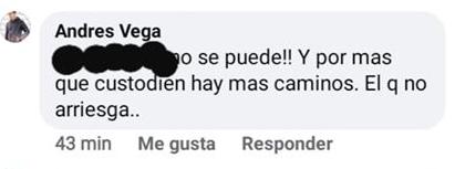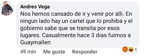 "Por más que custodien, hay más caminos", escribió en su cuenta de Facebook Arnaldo André Quiroga Vega (39). Y siguió, "nos hemos cansado de ir y venir por allí. En ningún lado hay un cartel que lo prohiba y el Gobierno sabe que se transita por esos caminos. Casualmente hace 3 días fuimos a Guaymallén".