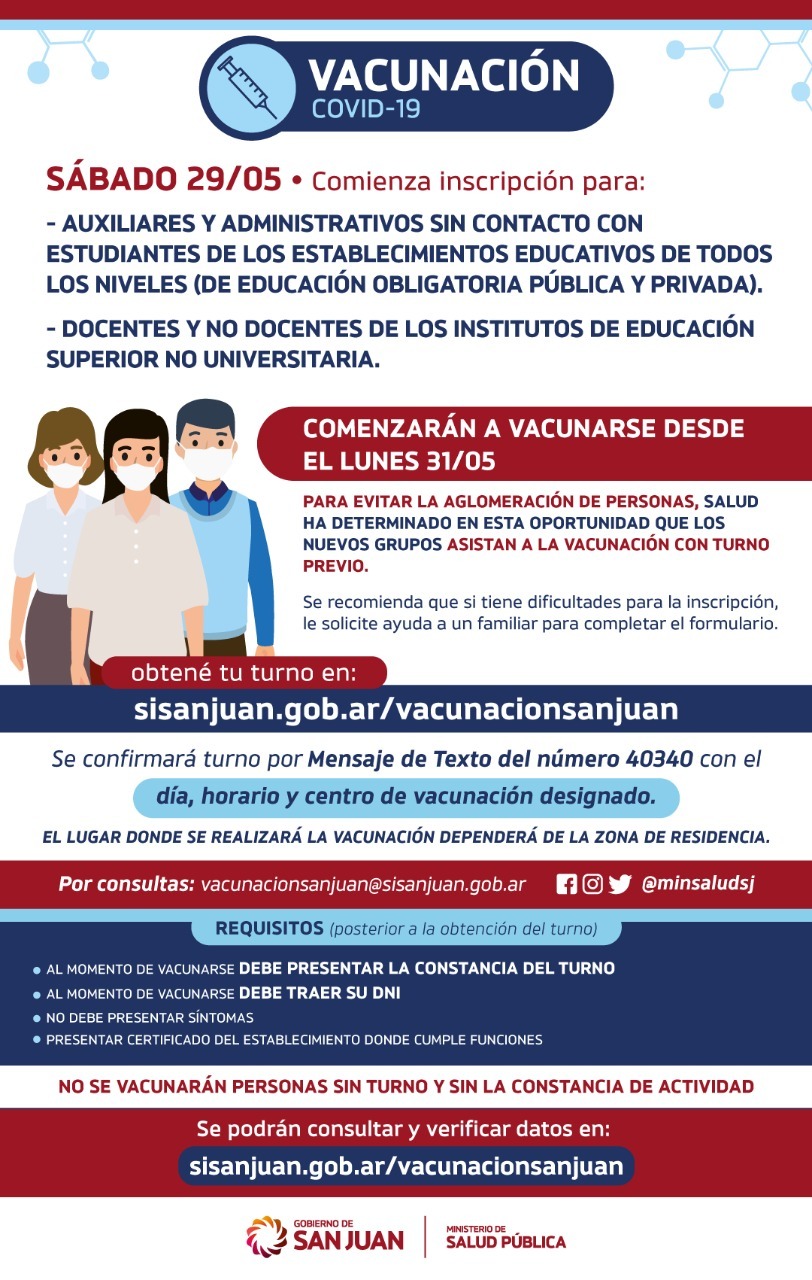 Aquellas mujeres que estén transitando su embarazo, deben inscribirse en el portal https://sisanjuan.gob.ar/vacunacionsanjuan, en el link de personas de entre 18 y 59 años con comorbilidades. De esta manera recibirán el turno correspondiente para la vacunación y necesaria protección contra el COVID-19.