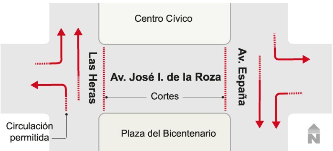 Como consecuencia, desde hoy y hasta que terminen de trabajar, la Avenida Central permanecerá cerrada al tránsito entre Las Heras y España.