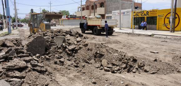 Tras la fuga de agua que hubo en Colón y Costa Canal, en Capital, y que terminó destruyendo el pavimento en Benavídez y Salta, comenzaron ayer los arreglos. Con dos máquinas, el municipio de Chimbas empezó a nivelar un tramo intransitable.