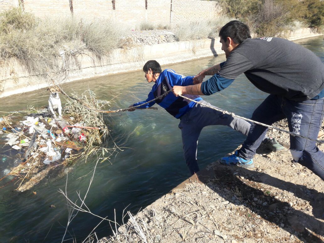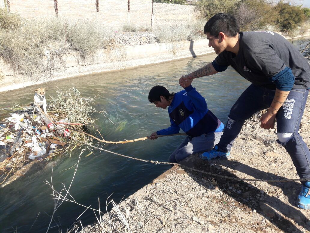 Por la desesperación del can, los jóvenes buscaron un palo y una soga para poder sujetarlo. Uno le agarró la mano al otro y así pudieron acercarse al animal. Tal como lo planearon, el rescate fue un éxito.