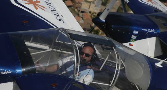 El ruido de los motores hizo que los pelos se pusieran de puntas y que un nudo se formara en la boca del estómago. El vibrar del avión fue la señal, junto al viento que se colaba por la puerta, de que la aventura de ver las acrobacias desde arriba se acercaba. Ahí, Antonio, el piloto del Aeroclub de Pocito enfiló tras las tres pequeñas naves de la Agrupación Hangar del Cielo, para que la emoción comenzara a florecer.