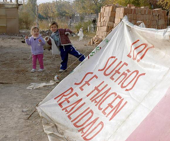 La carpita de lona dice "Los sueños se hacen realidad", mientras unos niños juegan alrededor sin percibir la ironía. Los troncos arden, una pava se tizna a las brasas y el vapor sale de las bocas, entre tiritones de frío. Los ocupantes de un asentamiento en Chimbas, a 7 cuadras de la Municipalidad, están reunidos alrededor del fuego, decidiendo qué van a hacer. Se trata de un grupo de personas que el 19 de mayo pasado ocupó un terreno de calle Astudillo y Sarmiento, frente al Lote Hogar 1, y que en 15 días creció a más del doble pese a tener todo en contra: están en un espacio privado, ya hay una denuncia judicial por usurpación, el Intendente anunció que no puede hacer nada y la Policía ayer les envió citaciones.
