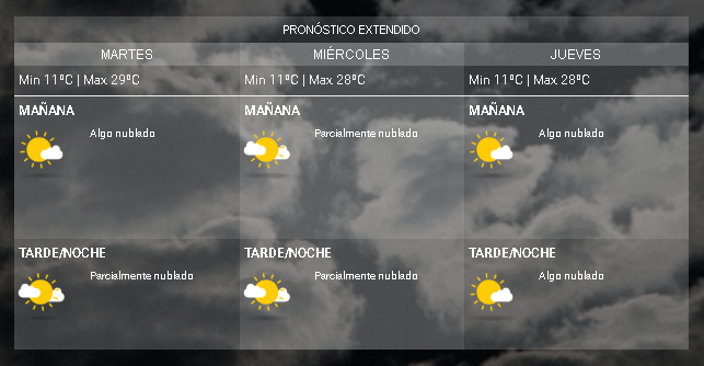 Del mismo modo, pronostica que para el miércoles y jueves la máxima alcanzará los 28ºC y la mínima será de 11ºC.