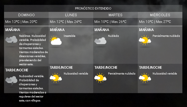 Para los primeros días de la próxima semana, se esperan máximas que oscilen entre los 24 y 27 grados, con cielo nublado e inestable.