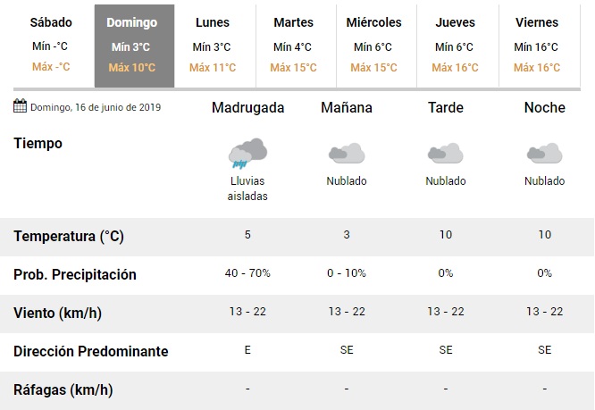 Para el lunes 17, feriado por el general Güemes, la máxima ascenderá hasta los 11°C. Para los siguientes días, se esperan máximas que oscilarán entre los 15 y 16 grados.