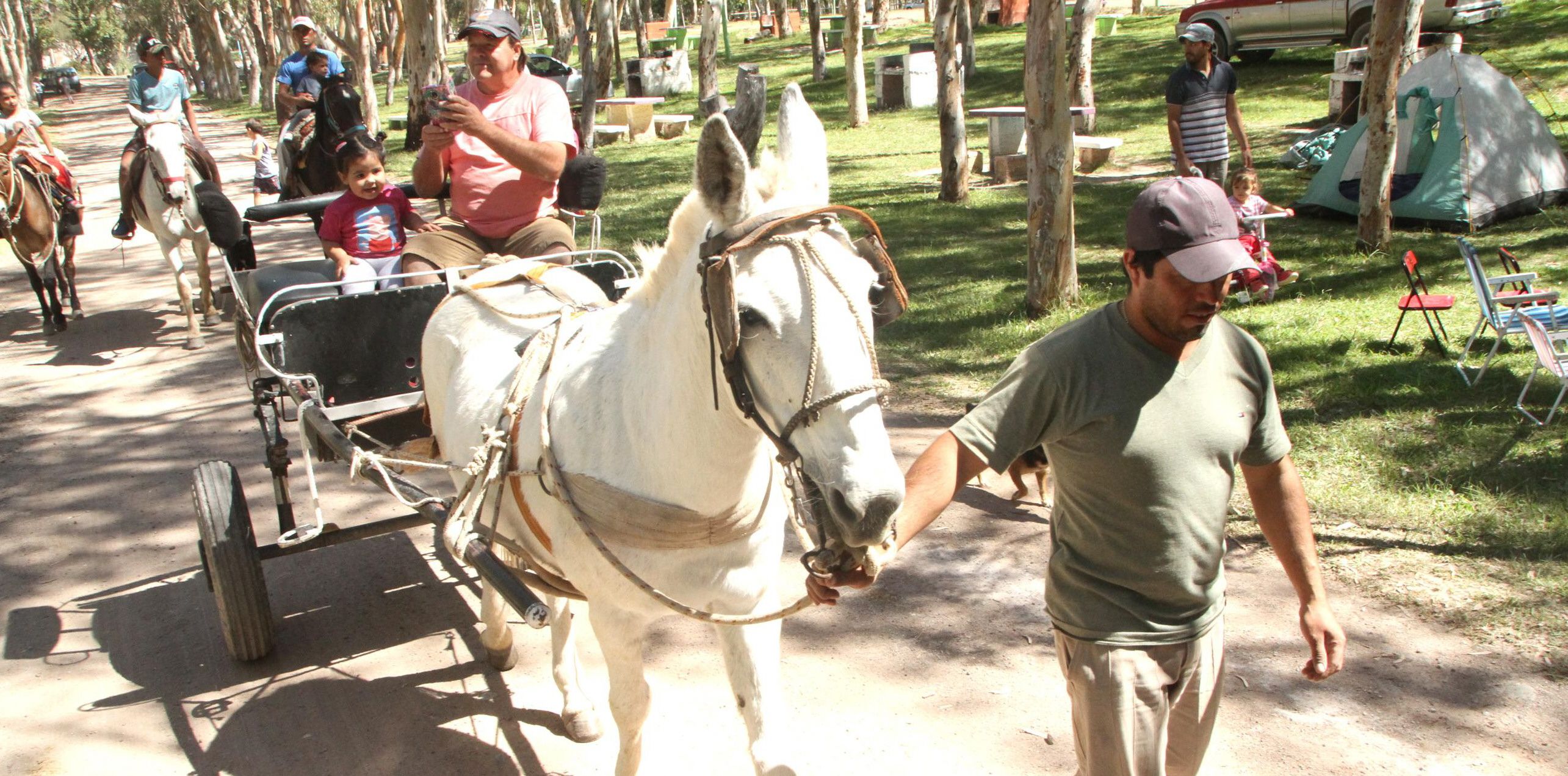 Gracias a la Ruta Interlagos el camping del Cerro Blanco se volvió uno de los lugares más elegidos para tomar mate, almorzar y pasar horas en familia o con amigos, al aire libre. Ayer, este camping estuvo lleno de turistas sanjuaninos y de otras provincias. Ahí, una familia de Zonda ofreció paseos en caballo o sulkys.