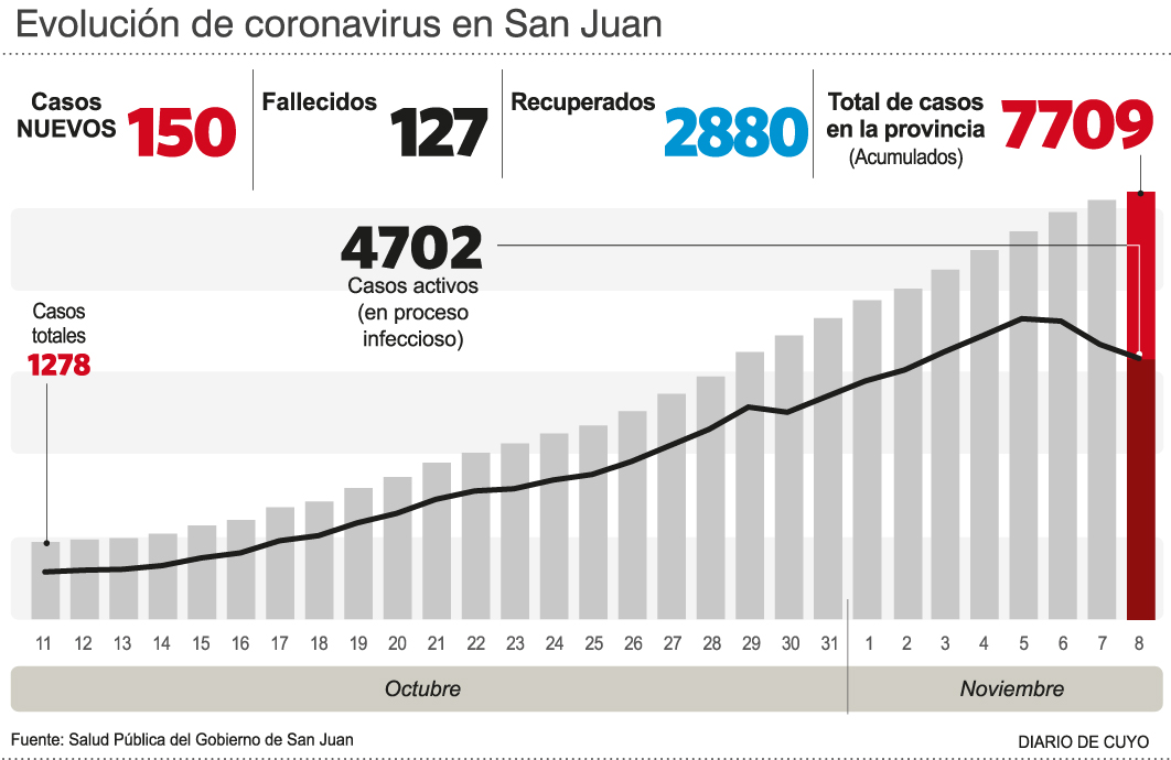 Aunque provisorio, ayer llegó un alivio con respecto al Covid-19 en la provincia. Fue el día con menos casos positivos y sin fallecidos en el lapso de una semana. Según el reporte de Salud Pública, hasta las 19,25, se registraron 150 casos nuevos y ninguna muerte, mientras que durante los seis días anteriores hubo un promedio diario de casi 300 casos positivos y de más de 4 muertes cada 24 horas. El total de casos positivos hasta el momento ascendió a 7.709, y de fallecidos a 127.