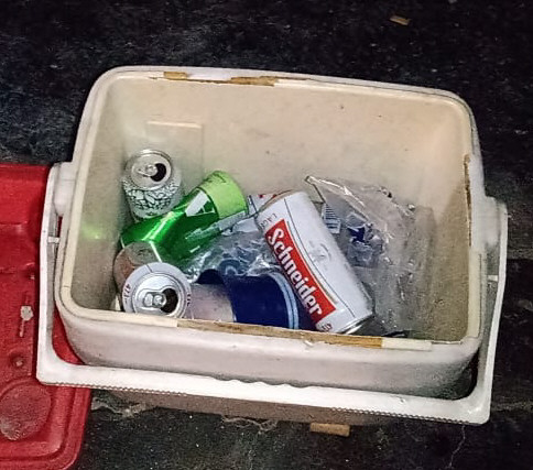 La Policía decomisó el alcohol que quedaba, en decenas de botellas, damajuanas y latas acumuladas en conservadoras por todo el comedor del caserón. Y aprehendió a todos los participantes. Interviene en el caso el Juzgado de Paz de Iglesia.