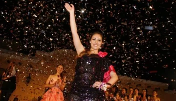 La morocha, de 19 años, saludó bajo una lluvia de papeles plateados. Seguida por el brillo de los fuegos artificiales que explotaban mientras los familiares de la candidata agitaban sin pausa los carteles con su nombre.